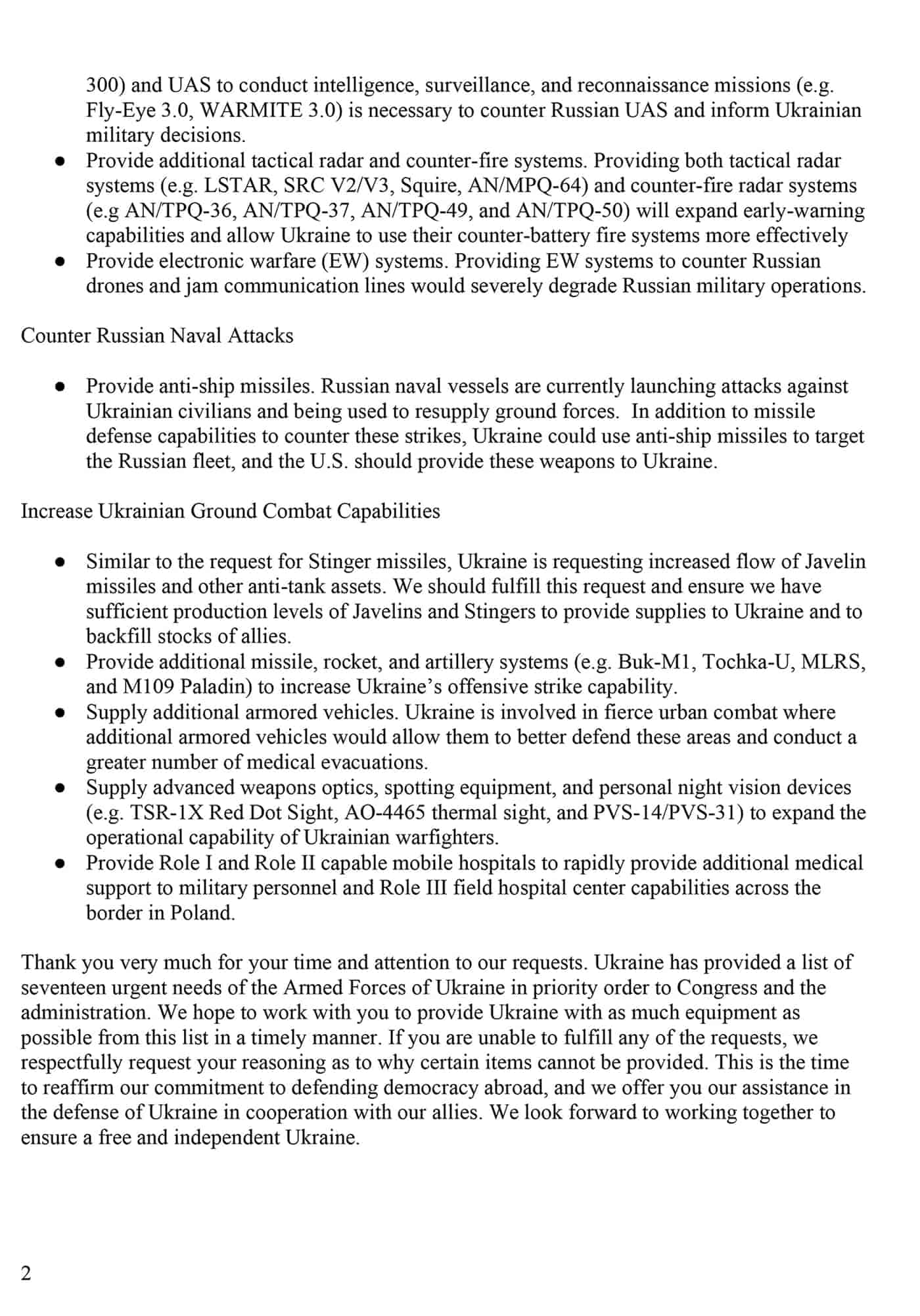 The list above is a manifestation of the trust between Ukraine and its western allies.